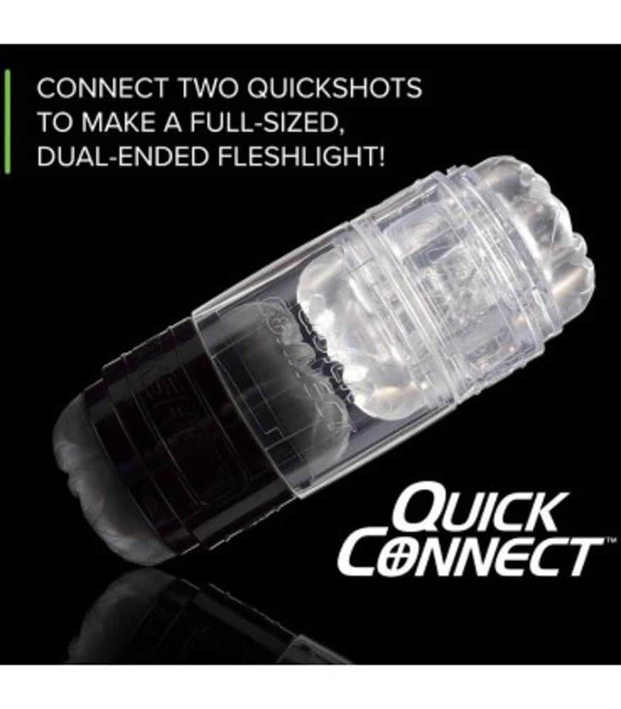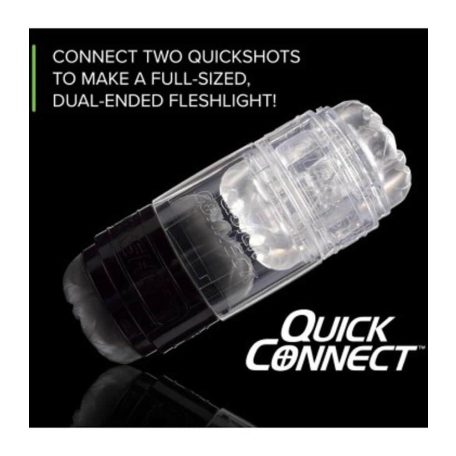 A Fleshlight Quickshot Quick Connect használatával frissítse a Quickshot élményét úgy, hogy két Quickshotot összekapcsol, így megduplázza a szórakozást. Élvezze a két különböző Quickshots textúráját egyszerre.