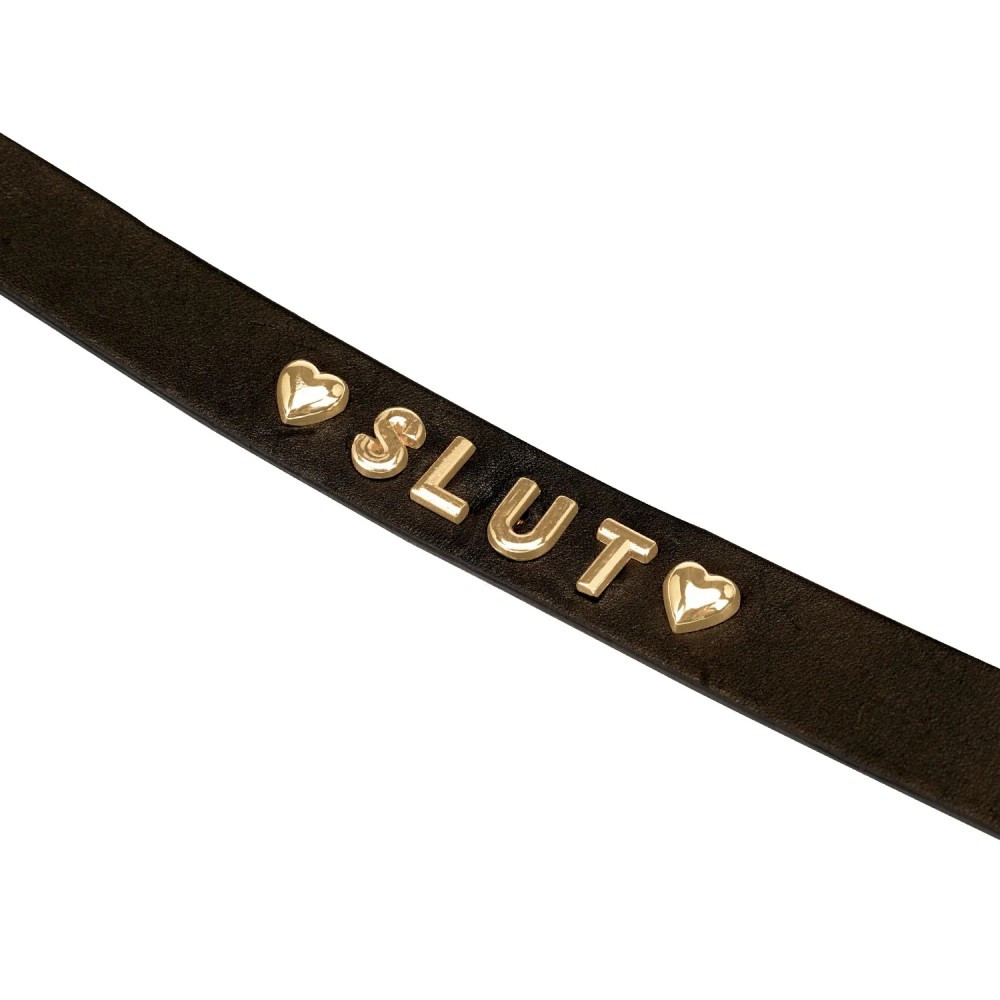 Tökéletes nyakörv, amely valódi bőr és egy csillogó kis arany szó ideális kombinációja. A mérete 31 cm és 40 cm között állítható.