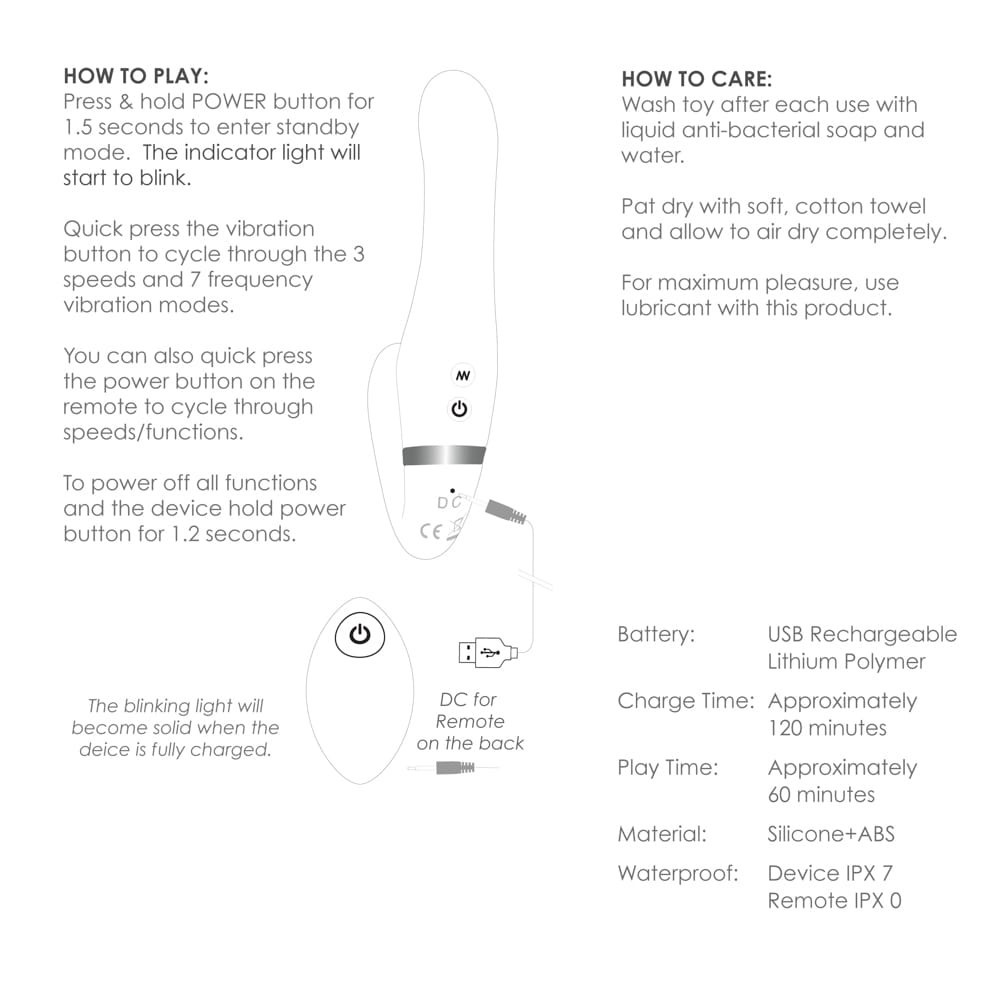 Kiváló minőségű anyagból készített, használójának anális stimulációt biztosító, vezeték nélküli távirányítóval is szabályozható, mind a két végében 10 rezgési fokozattal rendelkező dildó, melyet kezdőknek is ajánlanak.