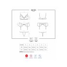 Elegáns, virágmintás és strasszokkal díszített fehérnemű szett, mely melltartóból, tangából és harisnyatartóból áll. A harisnya nem része a csomagnak.