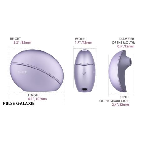 Fedezze fel a világot meghaladó élvezetet a Pulse Galaxie-val. Más klitoriszstimulátorokkal ellentétben, a szívóhatás érdekében levegőt nyom és húz, miközben a töltő dokkoló csillagfényes kijelzőt vetít. Fedezze fel az 5 üzemmódot és az 5 szívóerősséget, valamint a 3 csillagfény-kijelző módot. Használja a Pulse Galaxie-t a SVAKOM alkalmazással a testreszabható és hosszú távú játékhoz.